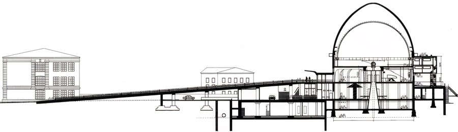 Планетарий «L’Hemisferic» (разрез), Испания, Сантьяго Калатрава, 1998 г.