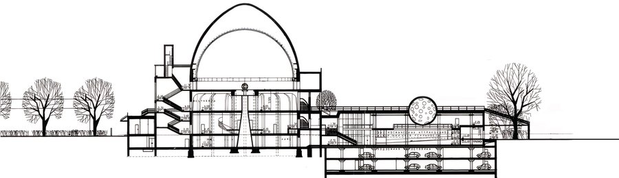 Планетарий «Tycho Brahe» (разрез), Дания, Кнуд Мунк, 1989 г.