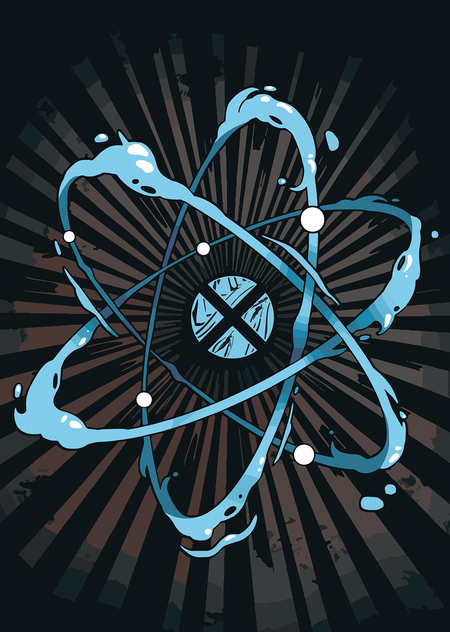 Мне хотелось обыграть распространенный в контексте атомной отрасти символ, объединив его с водной тематикой мероприятия. Черная обводка, потертости и немного «комиксный» стиль с четким разделением оттенков были вдохновлены логотипом X-WATERS.