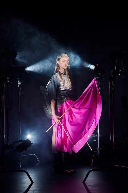 During the project, a search was carried out for the form , , , the creation of esquises, , the development of , the development of , the design of objects, the production of a unique accessories/flagstock , and the manufacture of decorations and 3D of objects, based on the author’s model, the introduction of sports technology into the elements of the evening wardrobe to display the contrast of heroin. All these steps have led to the creation of a diploma collection of 10 images.