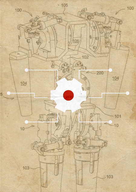Чертежи и схемы реальных робототехнических конструкций интегрируются в дизайн носителей в качестве фона или второстепенных элементов. Это придаёт проекту глубину и подчёркивает его технологическую направленность.