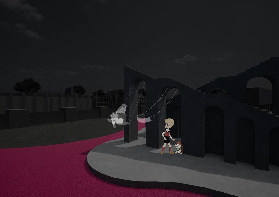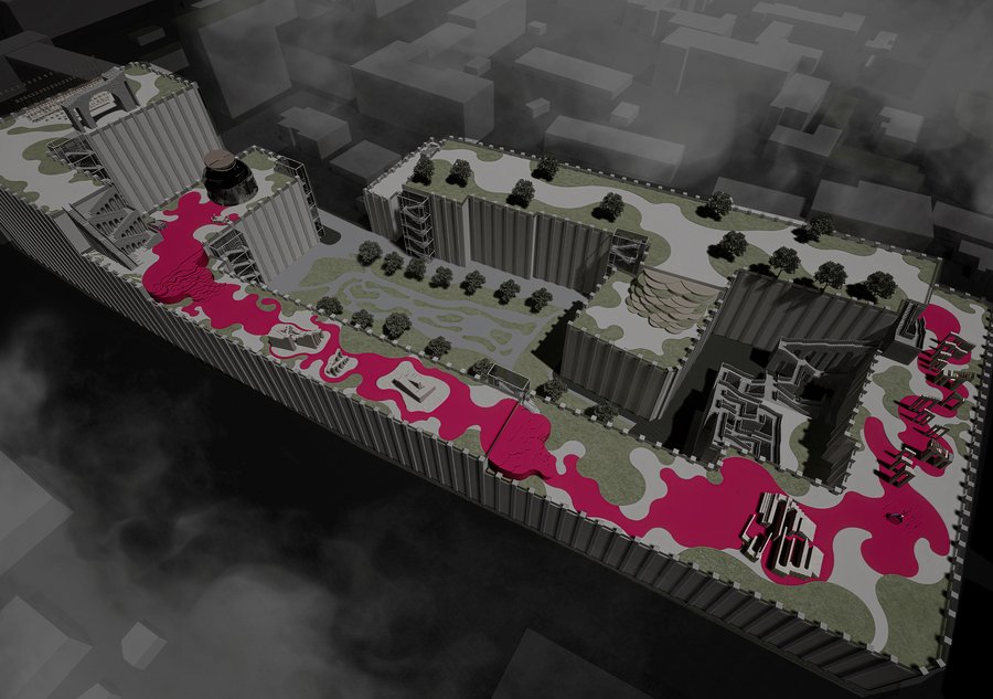 В данном проекте фабрика становится мини-городком с видом на центр Москвы, так как основные зоны детского комплекса располагаются на крыше. Это место всегда ассоциировалась со сладким, беззаботным детством, поэтому концепция детского городка продолжит эту ассоциацию.