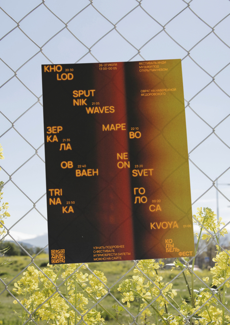 Именно поэтому было принято решение использовать метафору закатного солнца, которая проявляется через методы обработки визуальных материалов — имитация засветов на пленочной фотографии, а типографические принципы призваны напомнить образ переливающихся бликов от закатного солнца на воде.