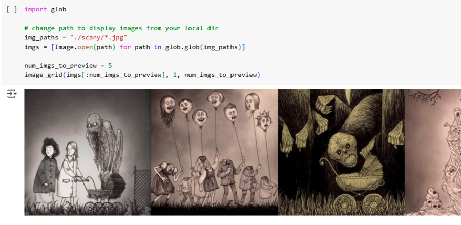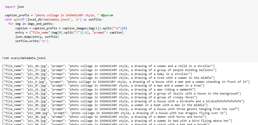 После данного этапа настало время убедиться, что подгруженный датасет отображается в коде. Дальнейшим действием было создание префикса для того, чтобы нейросеть запомнила стиль и смогла обучиться, опираясь на определенные слова.