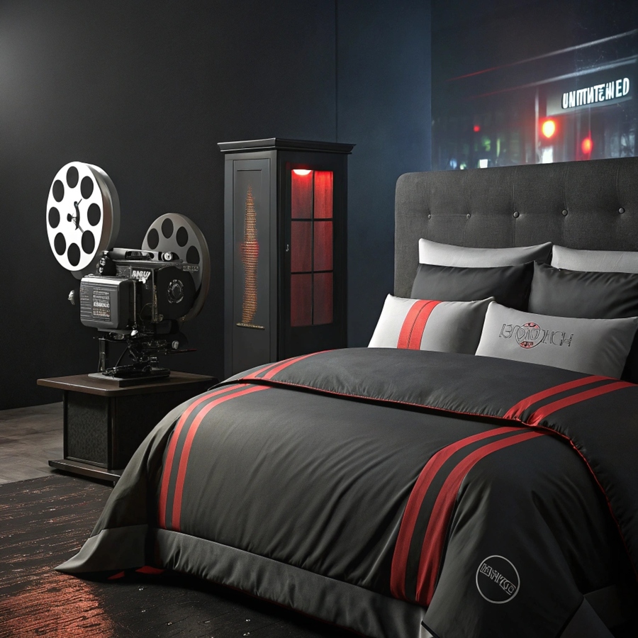 make a bed with a pillow in dark black and white red and gray