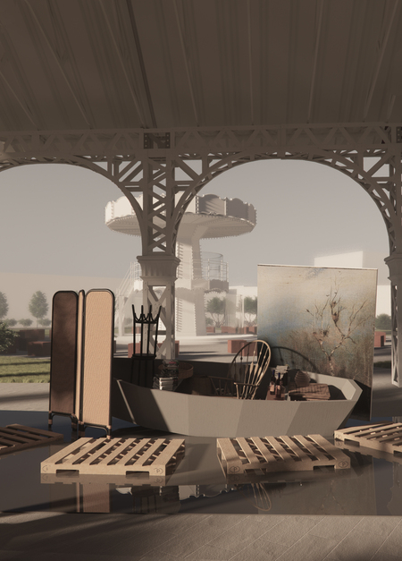 Река времен перетекает из одного павильона в другой и превращается в полноценный торговый путь. Вход в «антикварную» зону украшает старая рыбацкая лодка, от которой вглубь тянется неровная тропинка из паллетов. В роли торговых точек на сей раз выступают лодочки, сделанные из бетона, в каждой из которых покупатель сможет найти для себя уникальную вещь из прошлого.