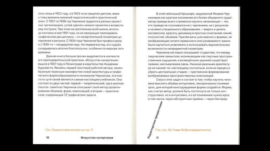 Дополненное переиздание книги Якова Чернихова «Искусство начертания» и проведенный на её основе ряд воркшопов, на которых студенты проверяли, как изложенные в книге тезисы и графические задания.