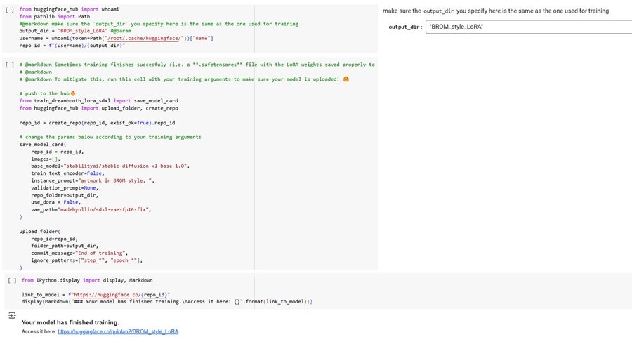 После этого я создала личный кабинет на платформе Hugging Face, сгенерировала токен и приступила непосредственно к обучению модели с использованием LoRA. Весь процесс при заданных параметрах занял два с половиной часа.