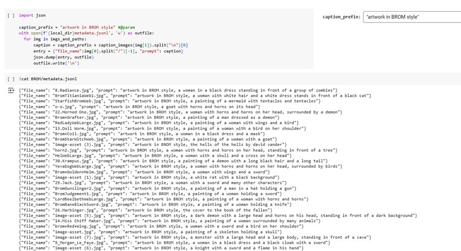 Далее с помощью модели BLIP были созданы описания изображений и префикс «artwork in BROM style».