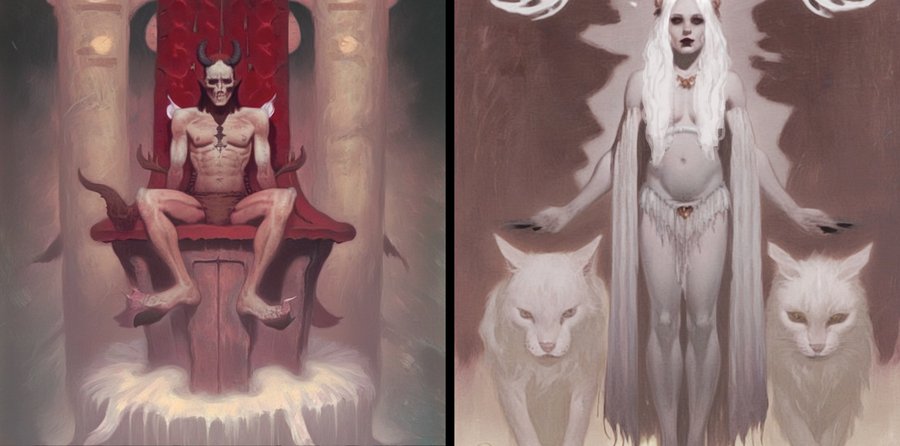 Опираясь на результаты первых генераций и особенности творчества автора в качестве итоговой серии я решила попробовать создать иллюстрации известных богов различных культур в стиле Брома, как если бы автор делал это для собственной книги.