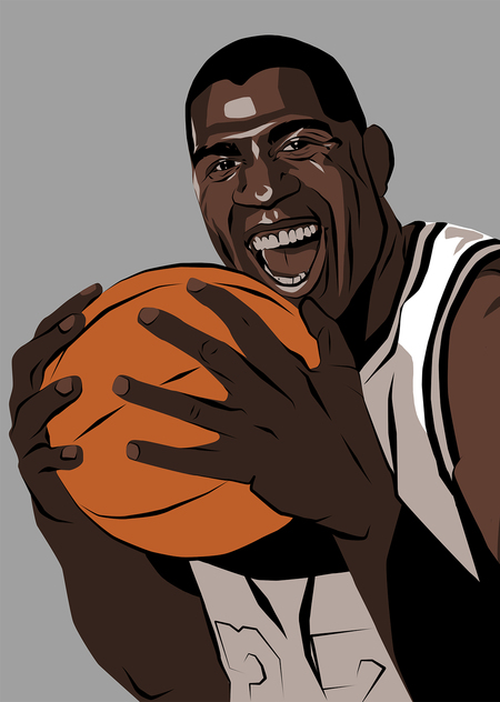 Серия портретов посвящена звездным баскетболистам. Работы сочетают в себе контрастный лайн с заливкой спокойных цветов.
