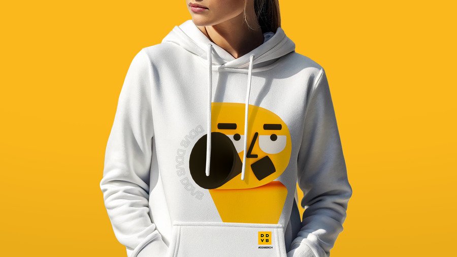 1 концепция: Основа айдентики — маскот. Он символизирует коллектив DDVB, объединяющий разных специалистов. Маскот подчеркнет уникальность каждого сотрудника и слаженность работы агентства в команде.