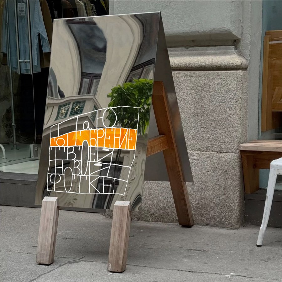 Зеркальный стенд у входа в «Подписные»/ Чехол