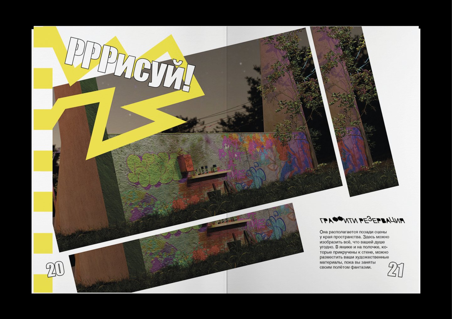 ЖЖЖ — карнавал, где гаражи могут выйти из серых рядов гаражных кооперативов и пуститься в пляс. Пространство карнавала состоит из восьми объектов, где можно найти развлечение на любой вкус.