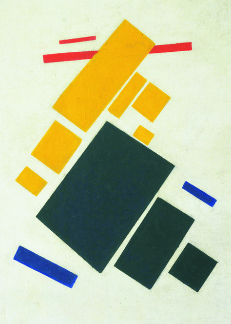 К. Малевич. Супремус № 58. 1916. Русский музей (Санкт-Петербург); К. Малевич. Супрематическая композиция: полет аэроплана. 1915. MoMA (Нью-Йорк); Эль Лисицкий. Геометрическая абстракция. 1916