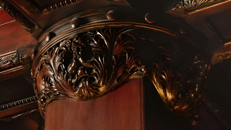 Во время реставрации в банкетном зале под подвесным потолком обнаружились невероятные пластиковые сталактиты, мраморный пол под цементной плитой из редкого и уже исчезнувшего мрамора.