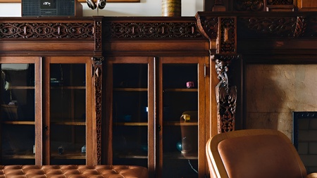 Отель «Chicago Athletic Association». Полки из номера «Founders Suite» | Колонна в вестибюле