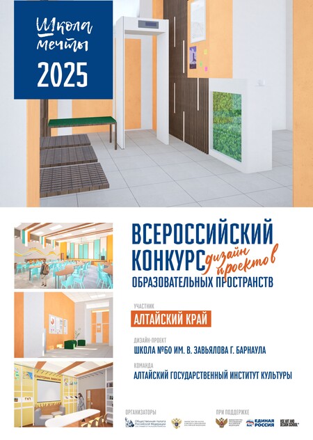 Здание СОШ № 60 им. В. Завьялова г. Барнаула строилось для исправительной колонии и по завершению строительства в 1963 году было передано под общеобразовательную школу. Входная зона очень маленькая — всего 12 м² переходящая в длинный, узкий Г-образный коридор.