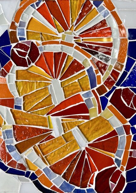 Мозаика Цветочная — это композиция из смальты, изображающая красные распустившиеся маки на фоне неба.
