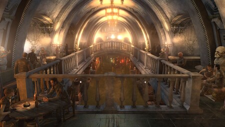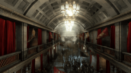 Но есть несколько локаций с масштабными пространствами — Полис, церковь, библиотека. Высокие потолки, лепнина, роспись, обилие воздуха и декора — всё это контрастируют с тесными и тёмными туннелями, показывая игроку, каким был мир до апокалипсиса.