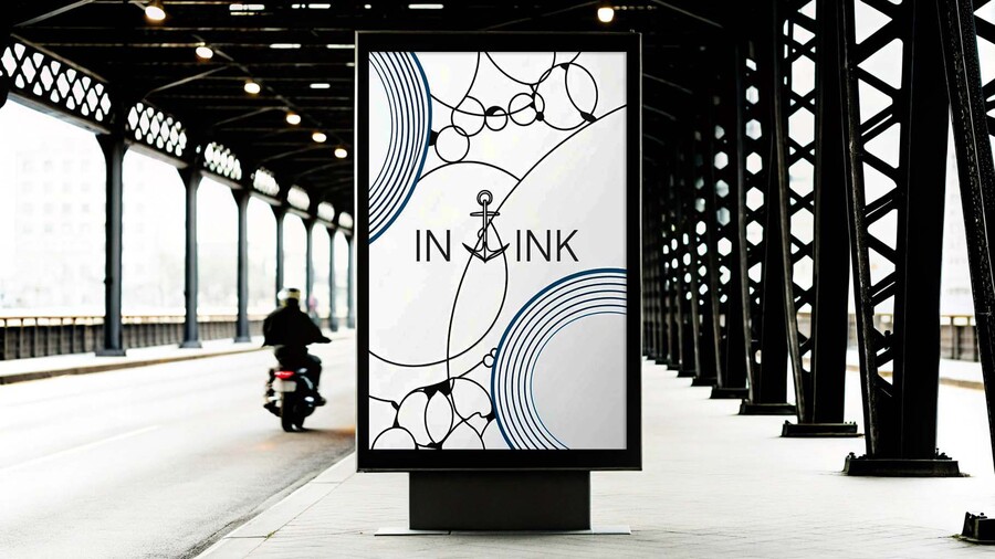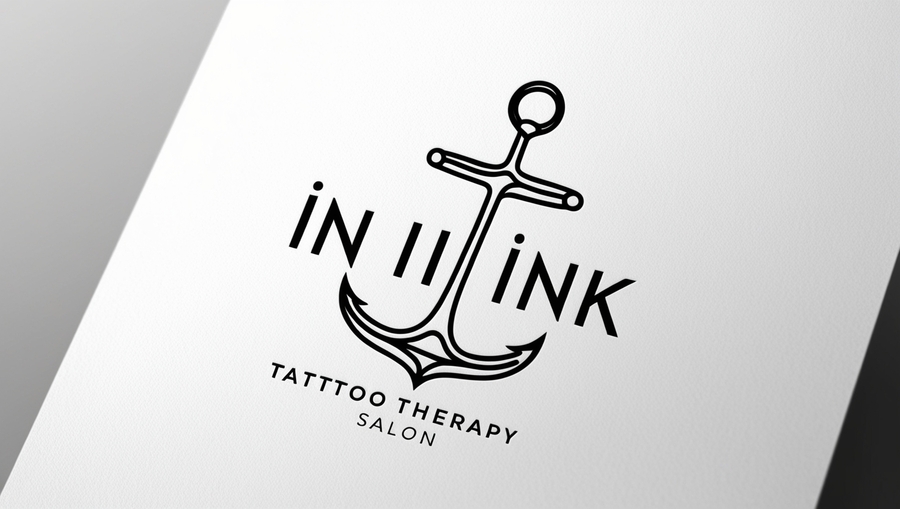 Я обратилась к leonardo.ai со следующим промптом: Create a logo for a tattoo therapy salon with the name «IN INK» in a clean, modern sans-serif font, centered and vertical on a clear white background. The focus is on the elegant single-line anchor pattern, intricately executed with smooth curves and subtle nuances, evoking a sense of sophistication and elegance. The anchor lines are thin and neat, with a delicate, organic pattern, as if hand-drawn with a thin pen. The anchor resembles the letter «i», it is minimalistic. The overall design exudes minimalism, simplicity and sophistication, perfect for a professional tattoo parlor. The text and anchor pattern are printed in bold, rich black font, which creates a striking contrast against a snow-white background, creating a visually appealing and effective logo that conveys the essence of the salon. The whole text is easy to read, the letters do not fit on top of each other.