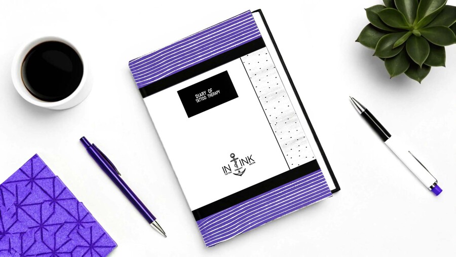 A diary for sketching during sessions with a psychologist. The cover should be minimalistic, with a small pattern of smooth lines. On the cover is the inscription «Diary of tattoo therapy»