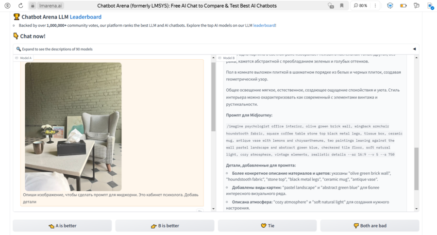 Визуализацию помещения оказалось сделать непросто: чтобы получить желаемый результат, нужно описать в промпте каждую деталь, но даже это не гарант того, что изображение получится в нужном качестве.