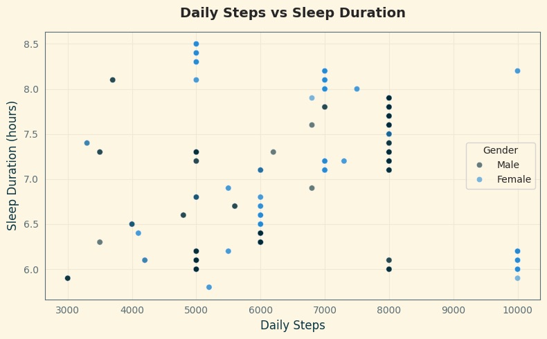 Для визуализации данных я использовал библиотеки matplotlib и seaborn, позволяющие создавать графики с полной кастомизацией внешнего вида. Для визуализации была выбрана приглушённая палитра, созвучная с темой сна. Акцент сделан на мягкие оттенки синего и зеленого, а в качестве фона был выбран молочный, а не чисто белый цвет, чтобы не напрягать зрение и поспособствовать здоровому сну зрителя, если он будет читать графики ночью. Для всего текста был использован единый шрифт Lato. Благодаря этому все графики визуально согласуются между собой и воспринимаются как части единого исследования.