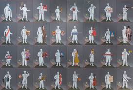Григорий Брускин в «Фундаментальном лексиконе» каталогизирует советские архетипы, помещая их в таблицу. Художник изображает их в виде скульптур, держащих атрибуты, указывающие на их связь с властными нарративами соцреализма. Такая форма отсылает к фигурам гипсовых пионеров, стоявших тут и там в советских городах. [8] Создавая картину-словарь типажей советского общества, Брускин раскрывает язык пропаганды, регламентирующий поведение, внешний вид и род деятельности идеального советского человека.