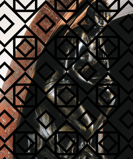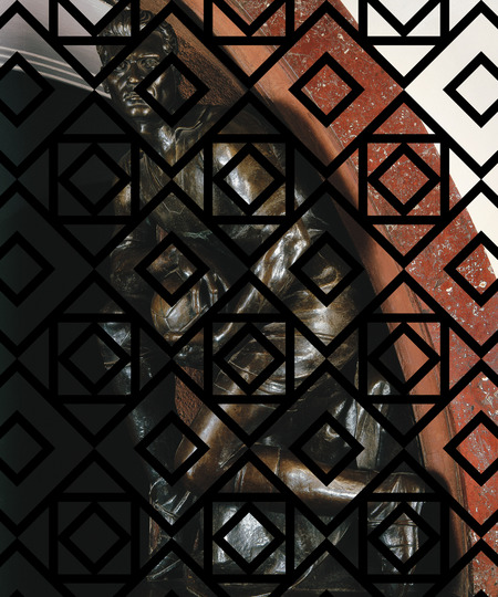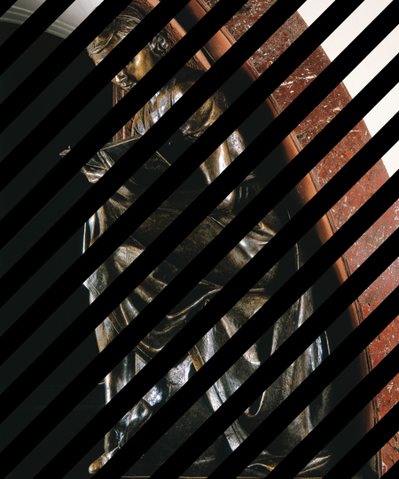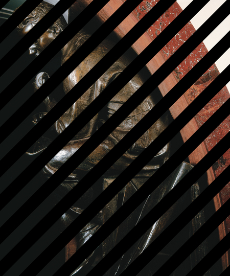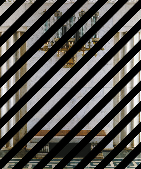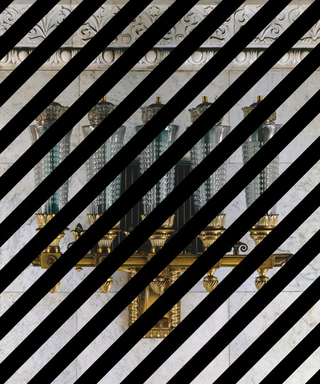 Слева: Мраморная каннелированная трехчетвертная угловая колонна пилона центрального зала. Справа: Бра на пилоне центрального зала. Бронза, хрусталь