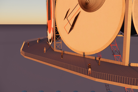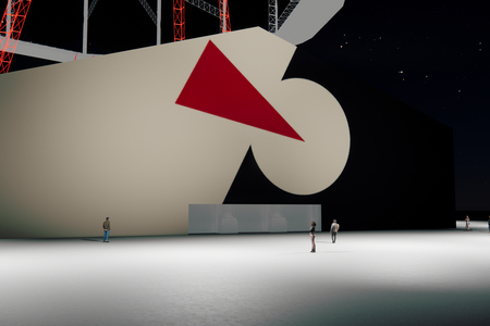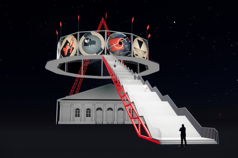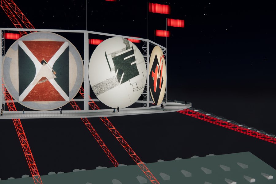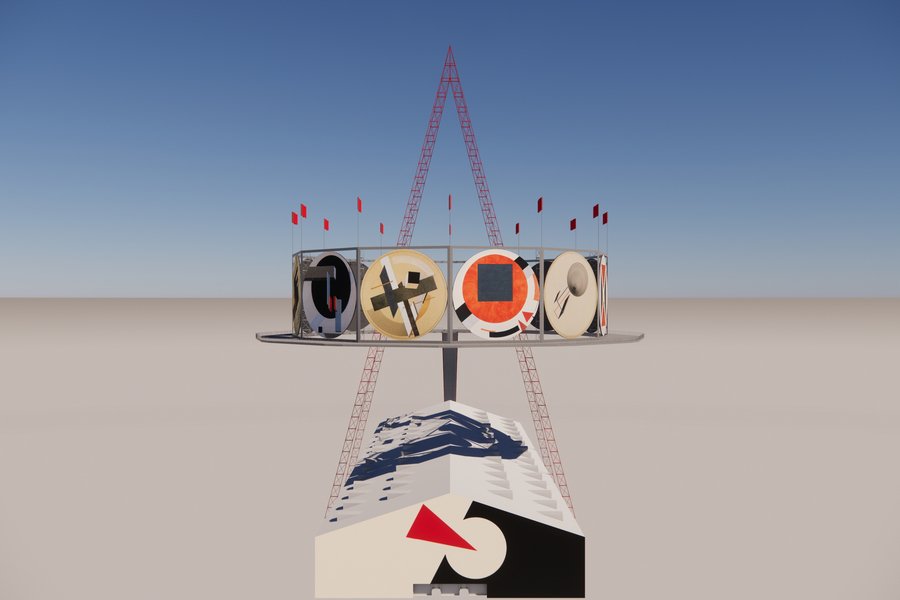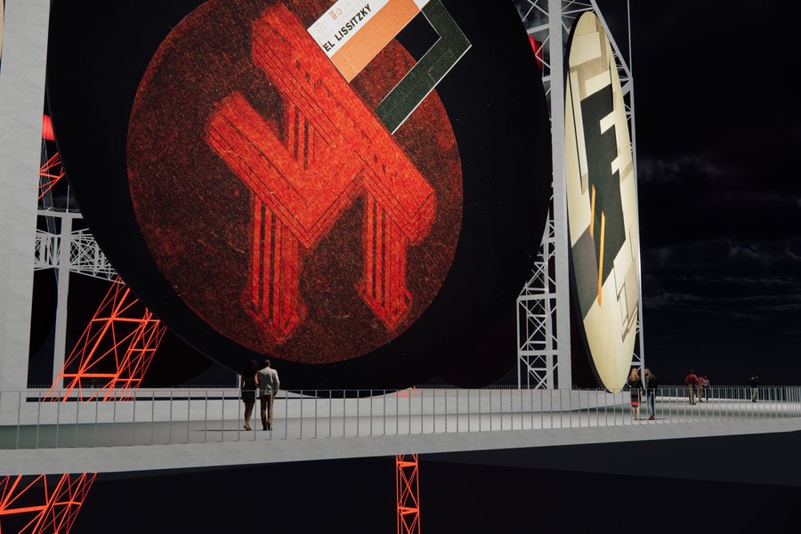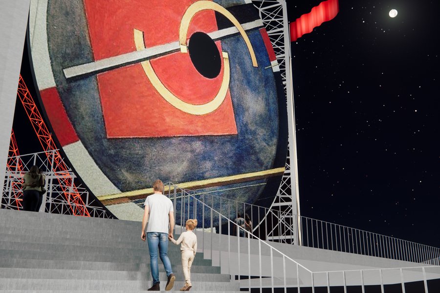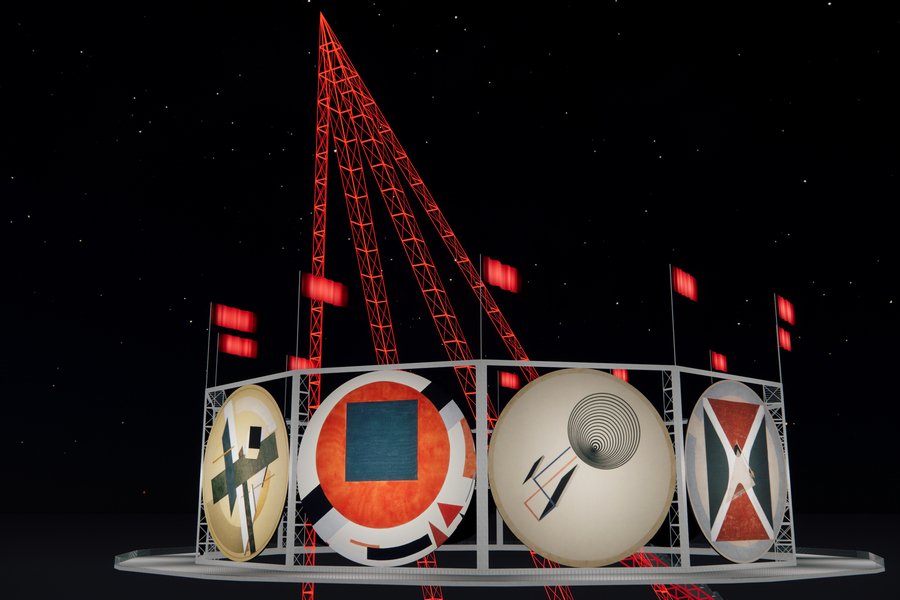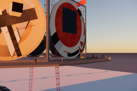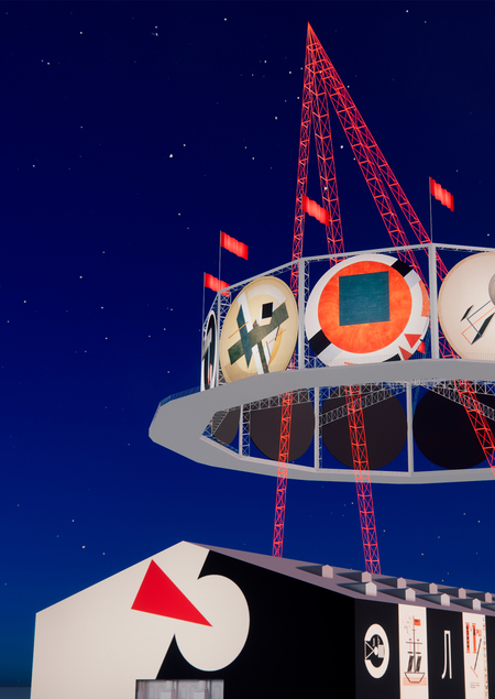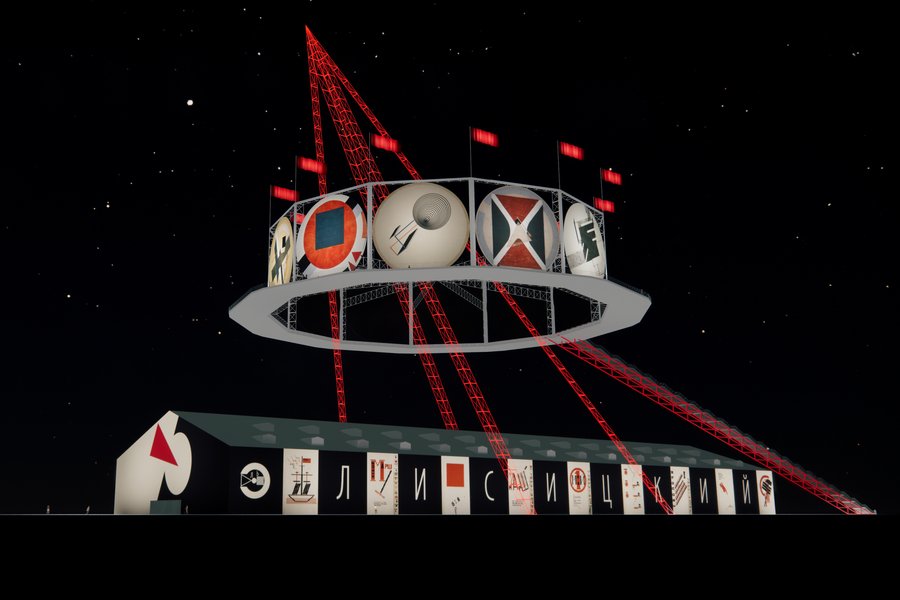 Архитектурный объект, основанный на работах Эль Лисицкого, передает динамику игры художника с геометрическими фигурами. Взаимодействие в этой работе плоских и объемных предметов отражает идеи авангарда и графичность композиции.