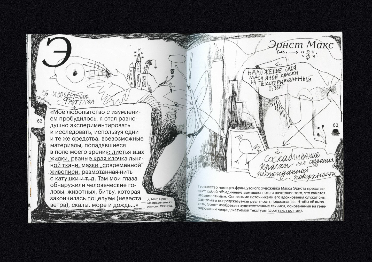 Иллюстрированный нон-фикшн, исследующий случайность как творческий метод в визуальном искусстве XX и XXI века. Каждая буква обозначает метод или имя художника и сопровождается небольшим абзацем, описывающим обращение к случайности. Книга поможет разобраться в том, как разные художники видели творческую силу в случае и какими методами они добивались выразительного непредсказуемого результата. Работа исследует случайность как объединяющее звено между творцами разных направлений — дадаистами, авангардистами, сюрреалистами, а также представителями цифрового искусства.