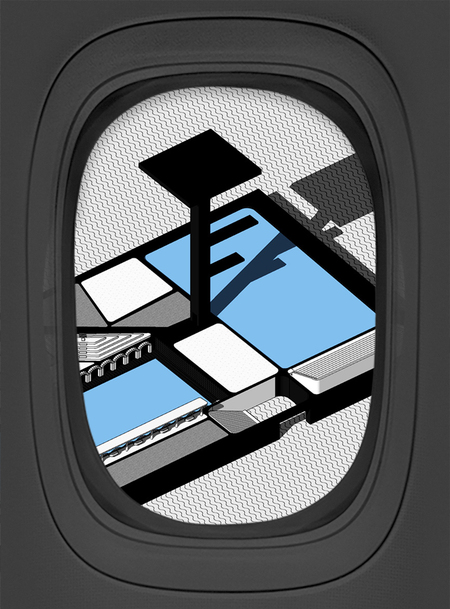 Проект благоустройства территории при музее художницы-сюрреалистки Кей Сейдж. Пустоши пейзажа на её картинах зачастую разбиваются на множество фрагментов, напоминающих вид из иллюминатора самолёта.