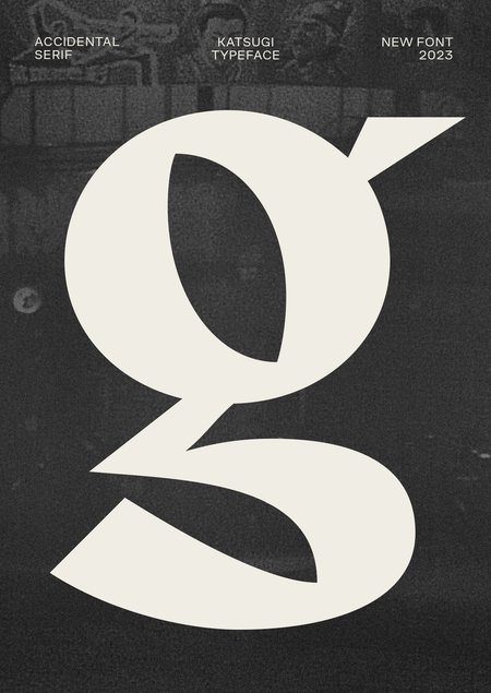 Katsugi — новая динамическая антиква с характерными треугольными засечками засечками и высоким контрастом. Хорошо подходит для заголовков и крупного начертания.