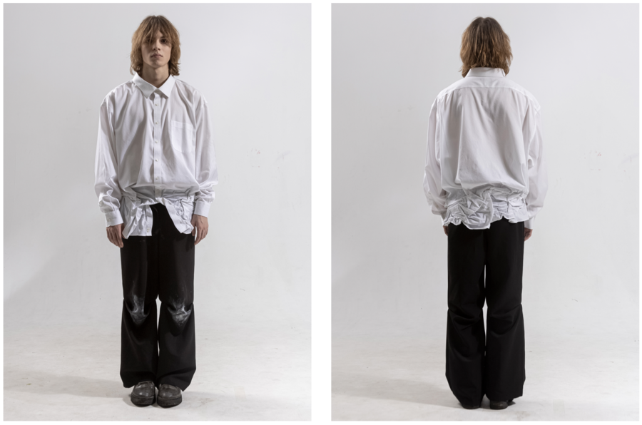 Переложив идею этого перформанса на одежду, я начал исследовать ее память, как феномен. По ходу работы я пришел к тому, что в своем проекте я запечатлю память о носке и стайлинге базовой одежды, которая не содержит в себе никакого социального контекста (памяти).