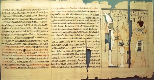 Живопись Древнего Египта. Изображение Осириса и Исиды из «Книги мертвых» на папирусе, около 1050 до н. э.