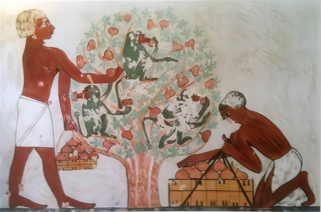 Земледелие. Рисунок из гробницы Дейр эль-Медины. Конец Древнего царства./Сбор плодов. Роспись из гробницы номарха Хнумхотепа в Бени-Гасане. XX в. до н. э