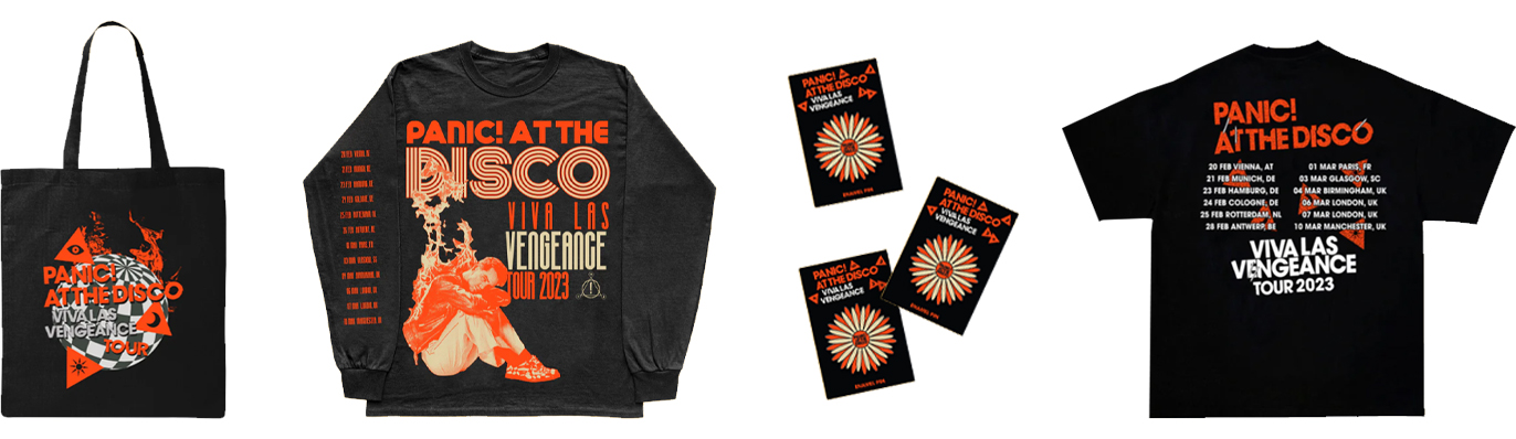 Мерч, созданный в рамках промоушена «Viva Las Vengeance» (2022) // Мерч, созданный в рамках промоушена тура «Viva Las Vengeance» (2023)