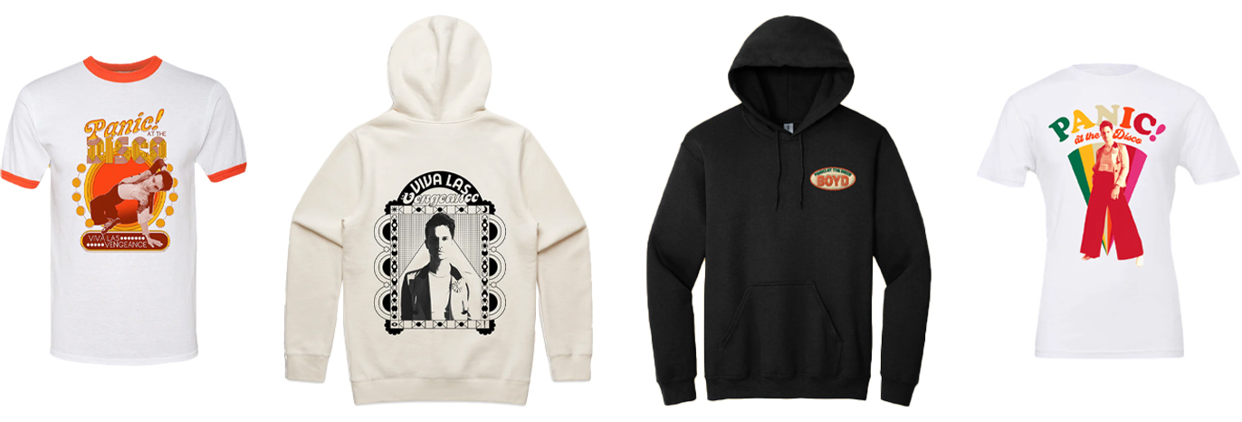 С выходом альбома была представлена сопутствующая продукция — сначала мерч самой группы (2022), а затем — коллекция, выпущенная в рамках тура «Viva Las Vengeance» (2023). Обе серии одежды выполнены в ключевом ретро-стиле альбома, но имеют ряд отличий. Мерч, связанный с основным релизом, преимущественно представлен в светлых, кремовых тонах и характеризуется использованием широкой цветовой палитры в иллюстрациях. В то же время коллекция, созданная для промо-тура, выполнена в тёмных тонах, а принты — в монохромной гамме: от ярко-оранжевых до нежно-рыжих оттенков.