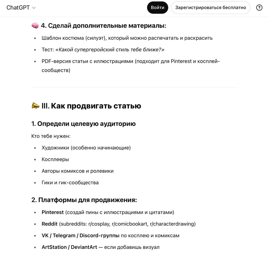 В первом ДЗ нужно было написать статью с помощью ИИ инструментов для продвижения личного бренда: я решила отталкиваться от своего визуального исследования на тему символики супергеройских масок и выложить статью о том, как создать супергеройский костюм.