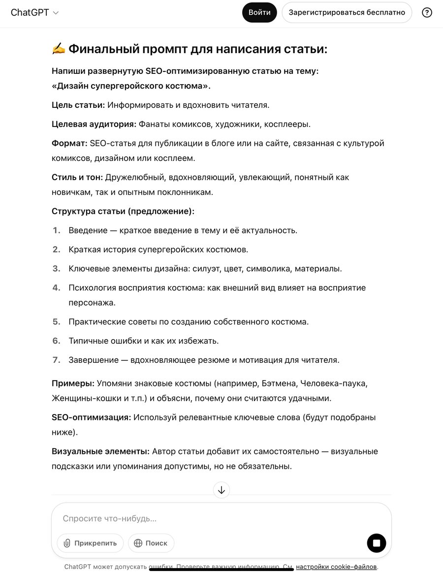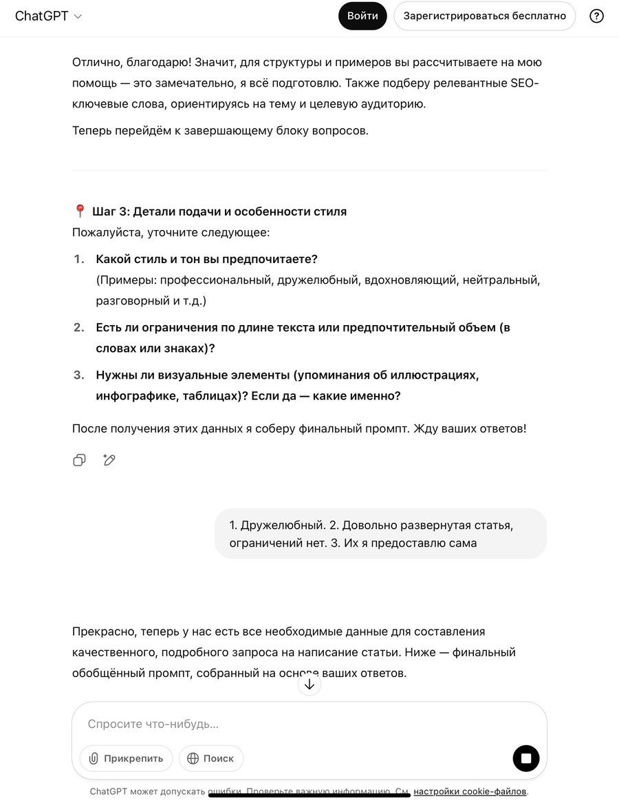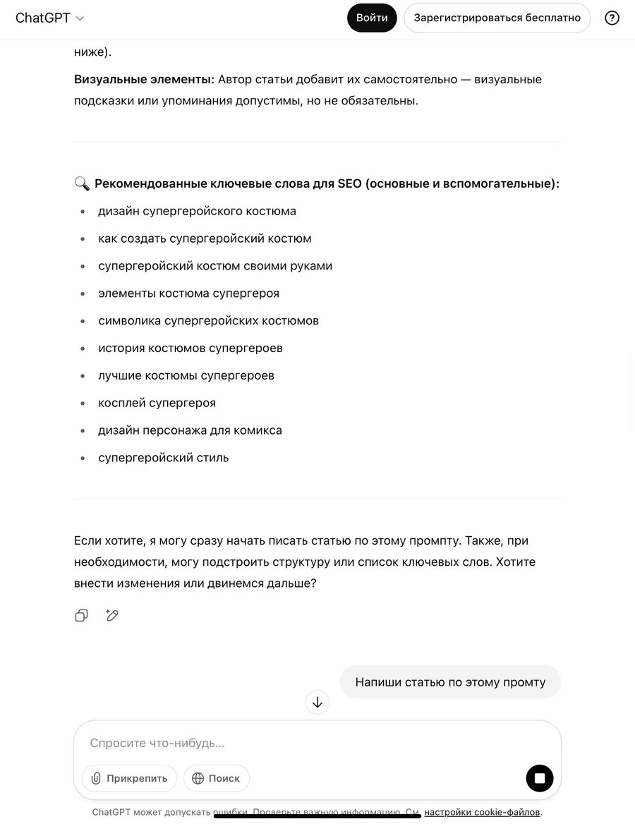 При написании SEO статьи я пользовалась промтами из лекции и привлекла ChatGPT — именно он сгенерировал статью по моим запросам, после я немного её отредактировала и приложила ссылку на собственное исследование.