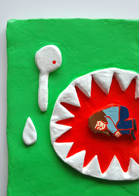 Поступив на иллюстрацию, я пропустила слово «комикс» в названии направления (но я оказалась не против). Проект из глиняных плиток, в основе которых тема создания комиксов. И пиранья, как способ их уничтожить.