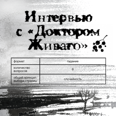 Литература — незаменимая хранительница ответов на бесчисленное количество вопросов человечества. И существует древняя практика — библиомантия, или гадание по книге, раскрываемой на случайной странице. Мы в Доме доктора Живаго решили попробовать и задали вопросы самому «Доктору Живаго».