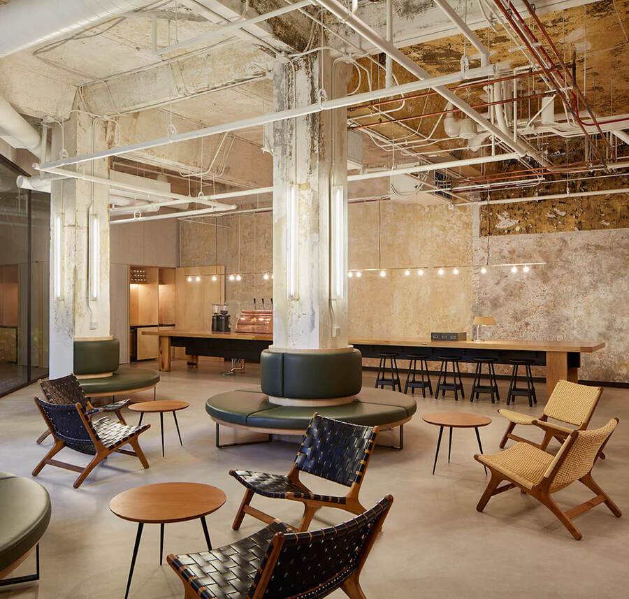 Убирая внутренние помещения, чтобы обнажить необработанные поверхности оригинального здания, дизайн добавляет современные отделки, такие как полированный бетон, березовая фанера и стальные каркасы, чтобы прочно придать помещениям современный вид.