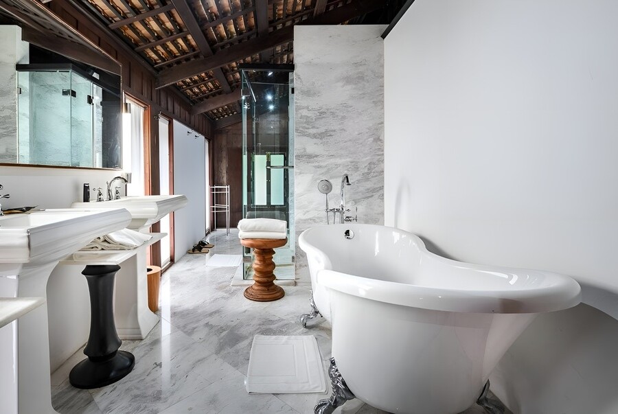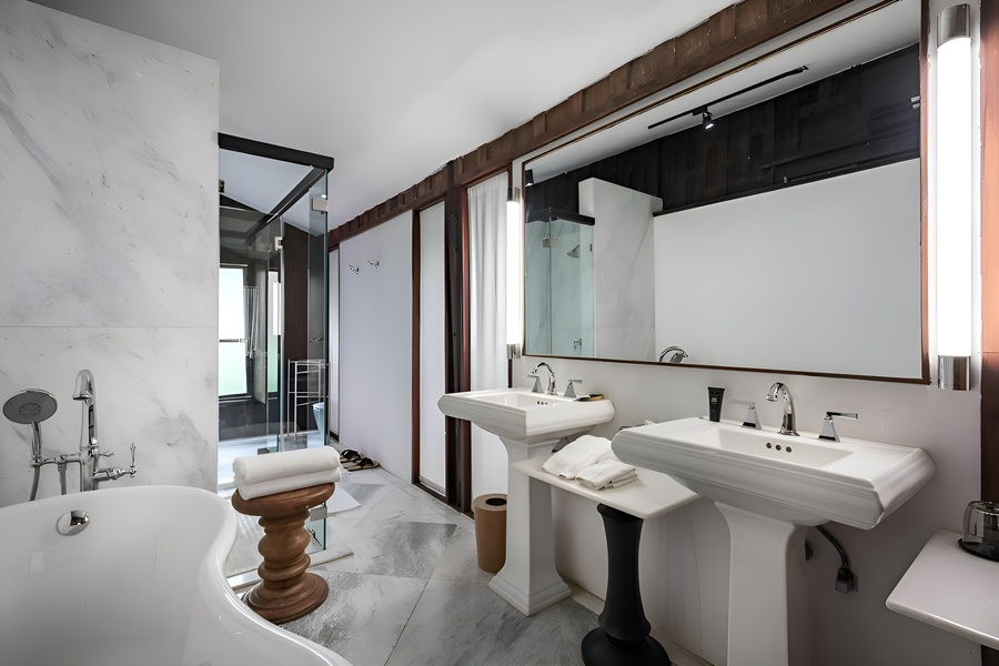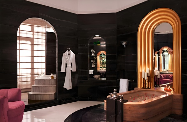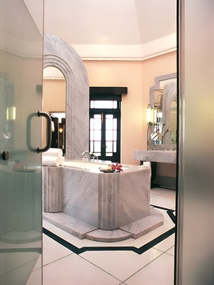 Угловые номера категории люкс имеют шикарные отдельно стоящие ванные с арками под куполообразными потолками, что навивает ощущение сказки. В люксе «Maharini» установлена оригинальная историческая ванная, вырезанная из цельного куска розового мрамора.