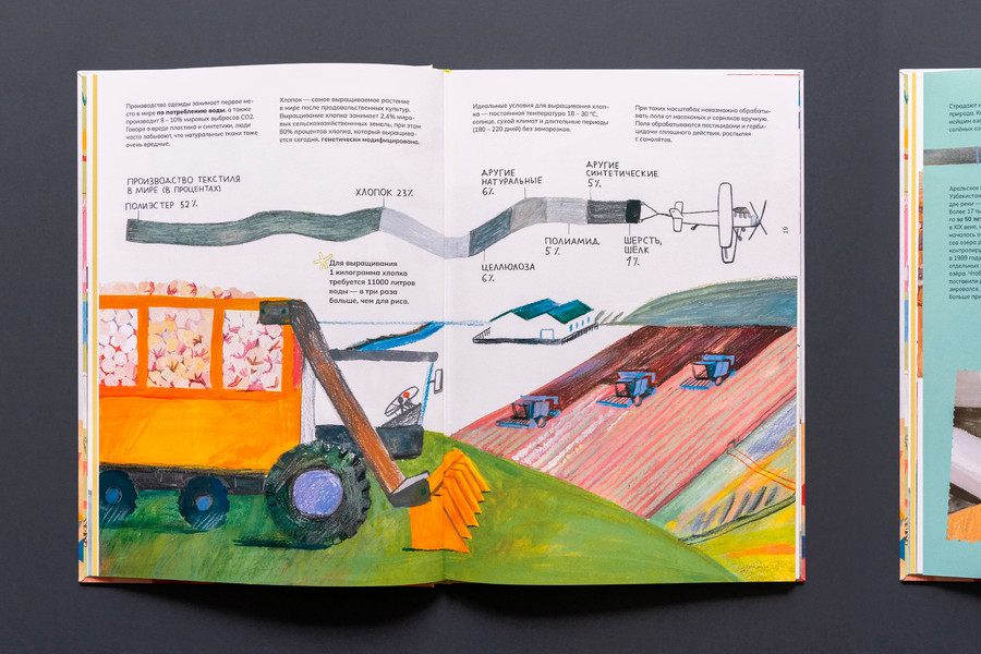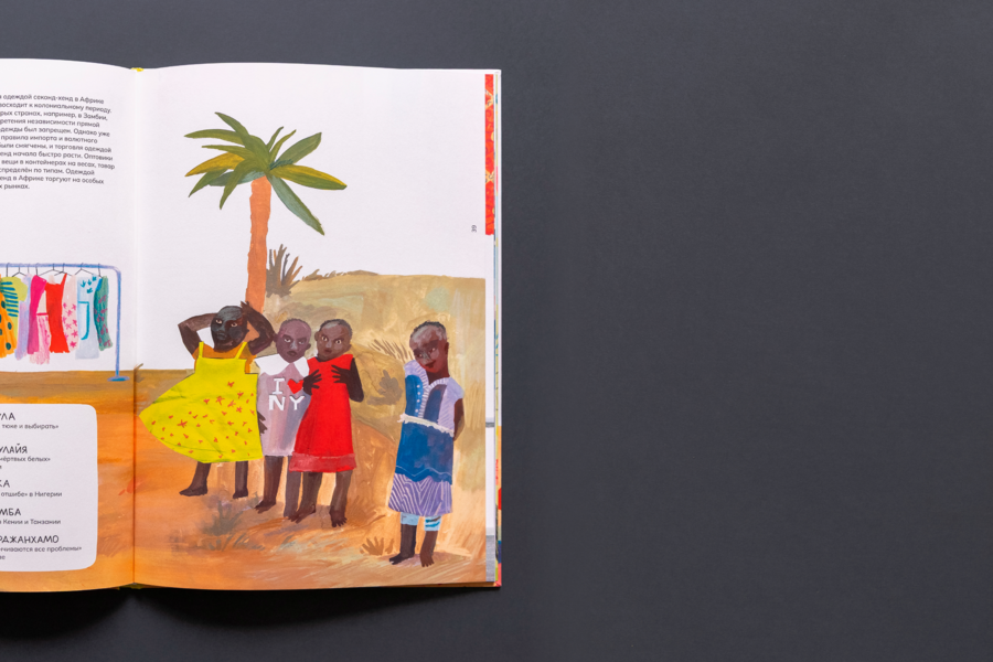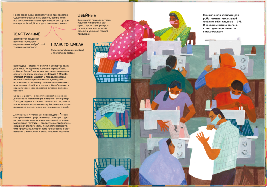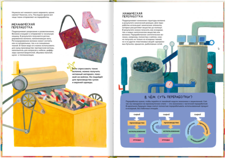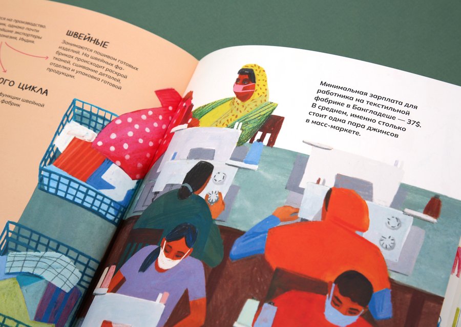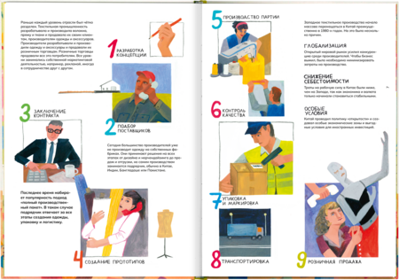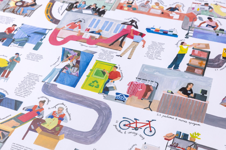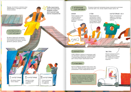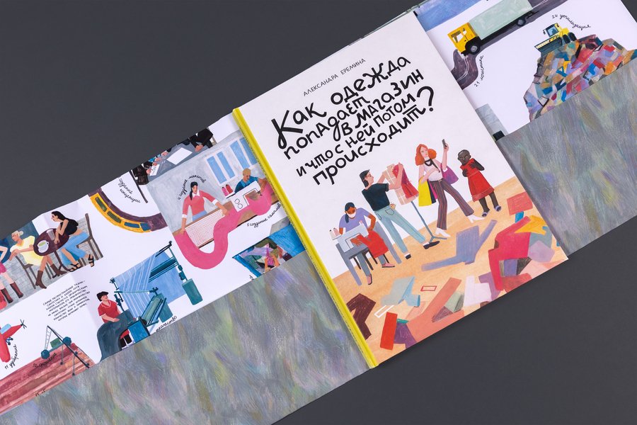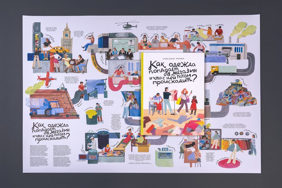 'How do the clothes get into the shop and what happens to it next? ' is an illustrated non-fiction about the road that the clothes make starting from production and finishing with the utilization or recycling.