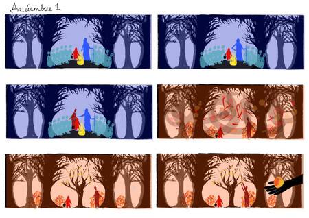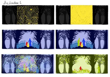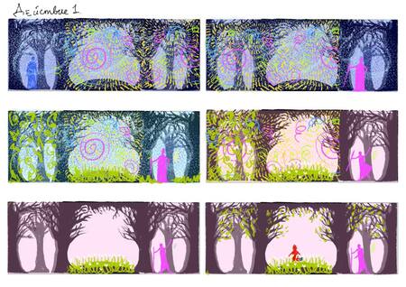 раскадровка сцен спектакля, автор: Лея Пастернак