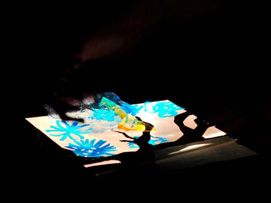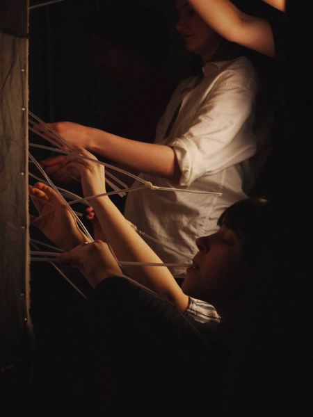 Нам хотелось поэкспериментировать с разными техниками и вместе с тем интегрировать закулисье в само изображение, чтобы руки актёров, которые с неизбежностью попадают в лучи света, сами стали визуальным приёмом.