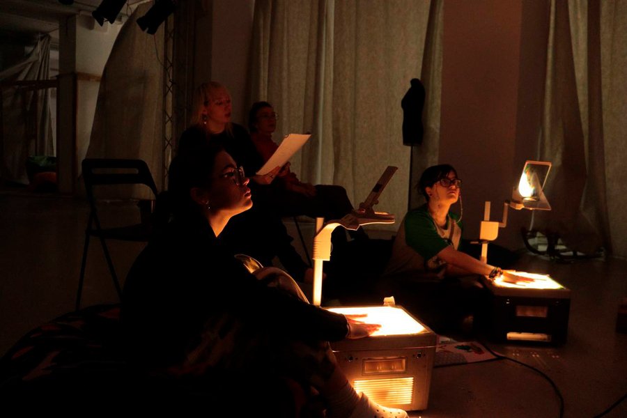 Мы были режиссерами этого проекта. Перед нами стояли задачи: разработка сценария, контроль создания сценографии, кукол и декораций, координирование работы саунд-дизайнера, организация репетиций и поиск решений для лучшей подачи материала.