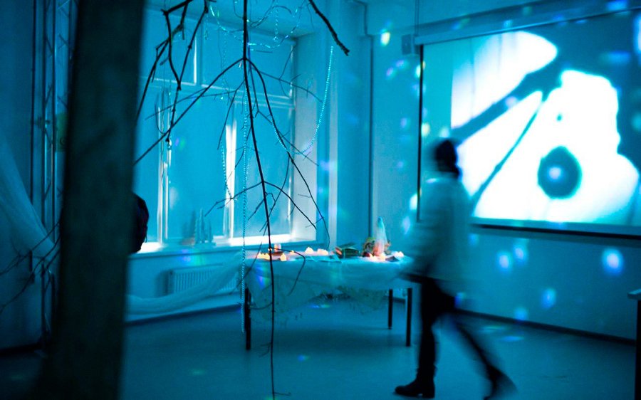Отдельно работу мы провели над создаем атмосферы, в которую погружались зрители еще до входа в зрительский зал. Пространство, ведущее к сцене, мы затенили, так что пройти по нему можно было только включив фонарик. Здесь, во тьме, среди ветвей, зрители, как и Марушка, могли пройти через все сезоны и познакомиться с каждым из месяцев, которые были представлены куклами.